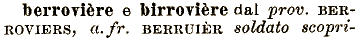 berrovière e birrovière dai prov. BERROVIERS, a.fr. BERRUIÈR soldato scopri