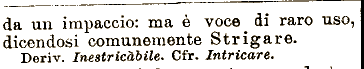 č voce di raro uso, dicendosi da un impaccio: ma comunemente Strigare. Deriv. Inestricābile. Cfr. Intricare.