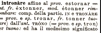 affine al prov. estornar === ^t. fr. éxtonner, mod. étonner intronare riměmbare: comp. della parfcic. IN e TRONŔRE = prov. e sp. tronar, /r. tonner tuoire) dall'ané. TRŇNO (=== prov. e sp. tron) ir tuono: ed ha il medesimo significato