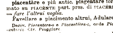 e più antic. pìagentàre ìor mato sii PIACÈNTE part. pres. di PIACER] ==»/are Valimi voglia. Favellare a piacimento altrui, Adnlar( Deriv. Pi'acenfóre-0 piacentàre e Piacentière-o, onde Pii ceriterfa, Ofr. Piaggiare,