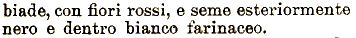biade, con fiori rossi, e seme esteriormente | nero e dentro bianco farinaceo.
