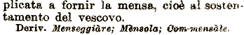 del vescovo. plicata a fornir la mensa, cioè al sostentamento Deriv. Menseggiàre; Mensola; Oom-mensàle.